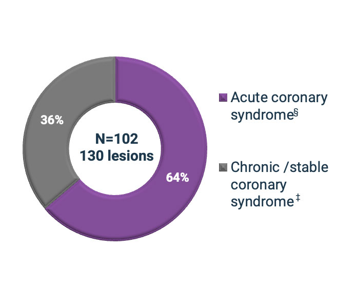 Imaging Core Lab adjudicated. †, PG derived from the average MSA 5.65 ± 0.75 mm². ‡, OCT/IVUS measurements available: 94 lesions